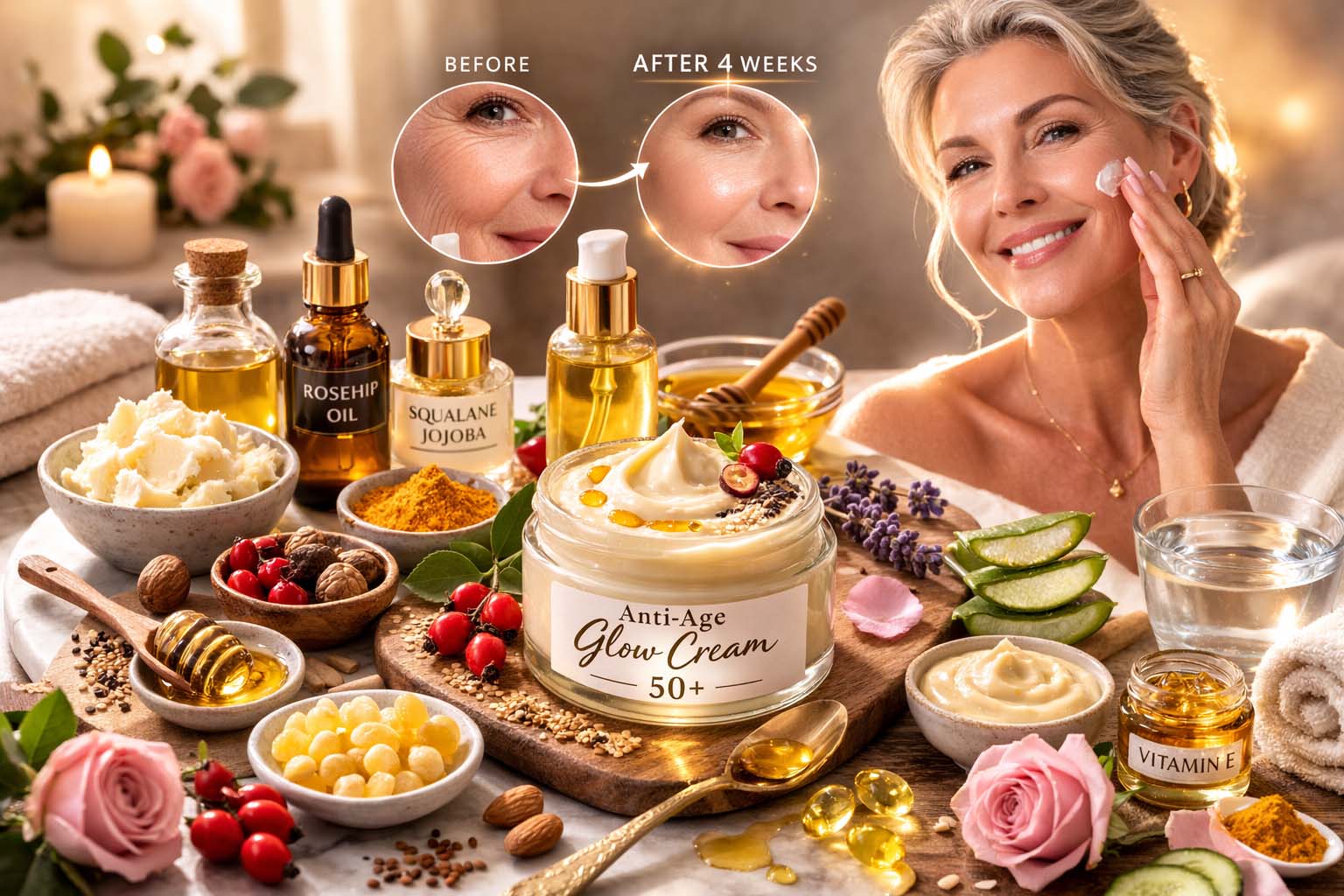 Over 50, skin often feels drier, looks less luminous, and fine lines can appear more visible because of lower natural oil production, slower cell turnover, and reduced collagen support. A well-made homemade cream can’t “erase” wrinkles, but it can improve the look of lines by deeply moisturizing, supporting the skin barrier, and adding that healthy, plump glow.