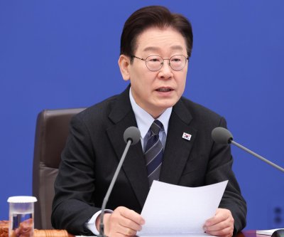 South Korean President Lee Jae Myung, seen here speaking at a Cabinet meeting on Monday, expressed regret over drone flights by individuals into North Korea. Pool Photo by Yonhap