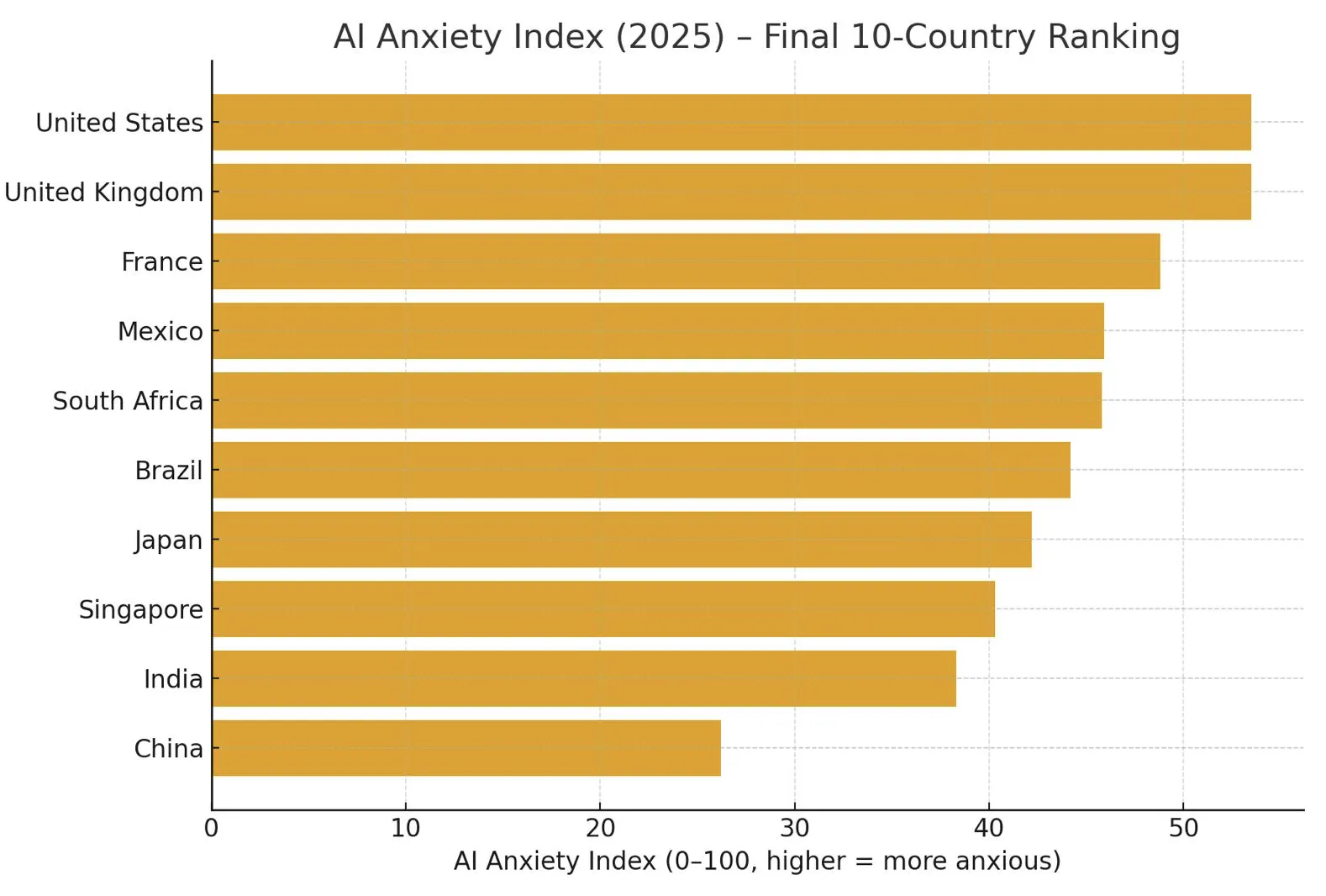 Public anxiety about AI cannot be ignored. It shapes what governments can implement and what companies can deploy. To better understand where legitimacy is most fragile, I have developed a prototype AI Anxiety Index at New York University. It combines public trust in government, workforce exposure to generative AI and polling on fears related to AI-driven disruption across major economies.
