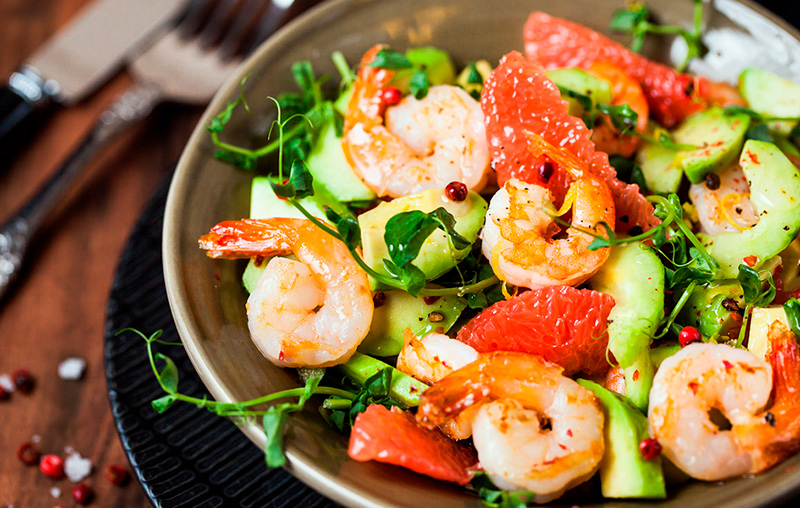 Create a salad that the whole family will enjoy by using fresh prawns. Merely add some fresh prawns to your preferred salad blend, and you’re done. We adore our prawn salad with rocket, which is garnished with avocado, pomegranate, citrus, fresh lime, and cracked pepper… delicious!