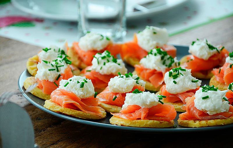 Smoked salmon crackers are a great way to get the festivities began. Merely spread your favourite crackers with a mixture of crème fraîche, minced fresh dill, lemon juice, and black pepper, then place a thin slice of smoked salmon on top. If you are unable to locate crème fraiche, simply substitute cream cheese, as in Philadelphia!