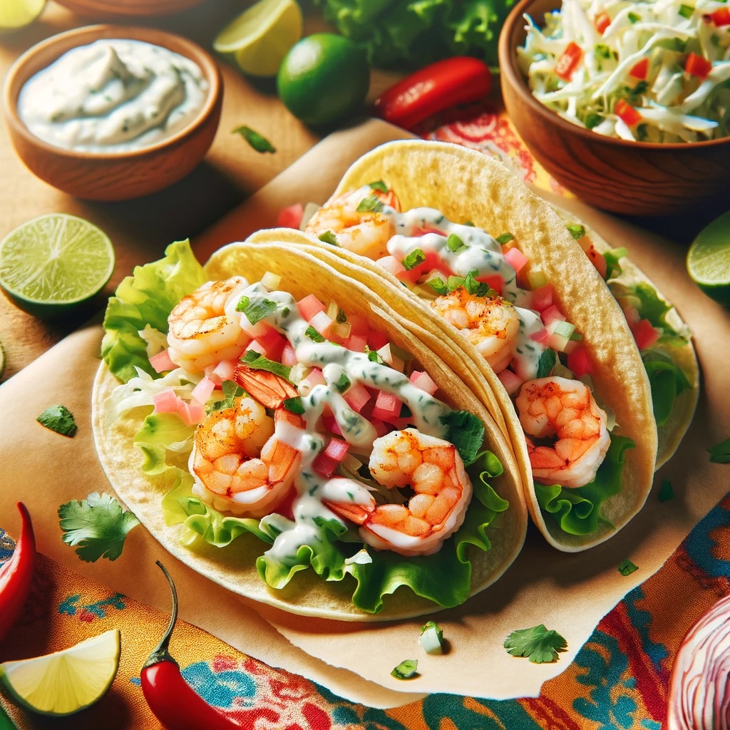 2. Spicy Shrimp Tacos with Garlic Cilantro Lime Slaw